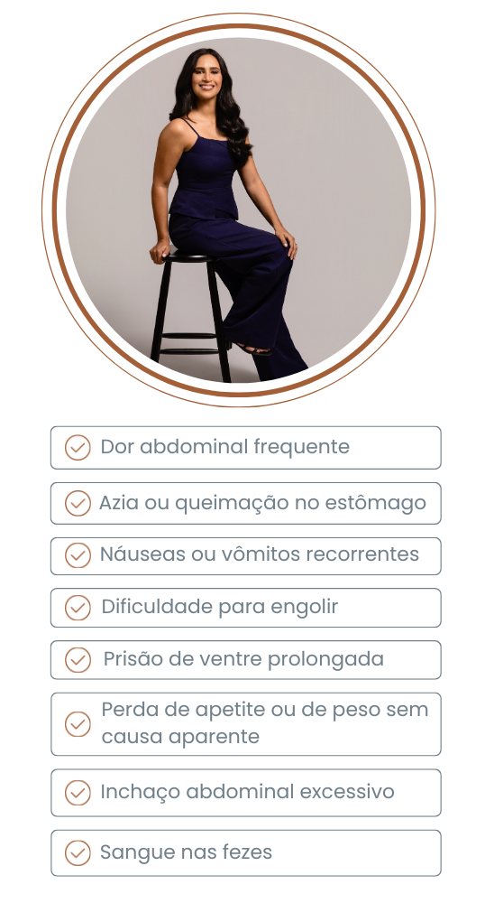 Investigação completa de sintomas gastrointestinais, incluindo exames laboratoriais especializados, endoscopia e colonoscopia para diagnóstico preciso.